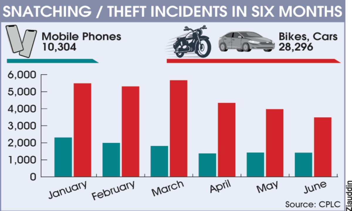 根据最新数据,今年上半年,卡拉奇共报告了870辆汽车被盗。具体情况如下:1月份盗窃163辆,2月份138辆,3月份141辆,4月份143辆,5月份145辆,6月份140辆。同时,截至2024年6月,卡拉奇的摩托车盗窃案件已高达22,652起。此外,过去六个月内,CPLC共报告了47起敲诈勒索案件。