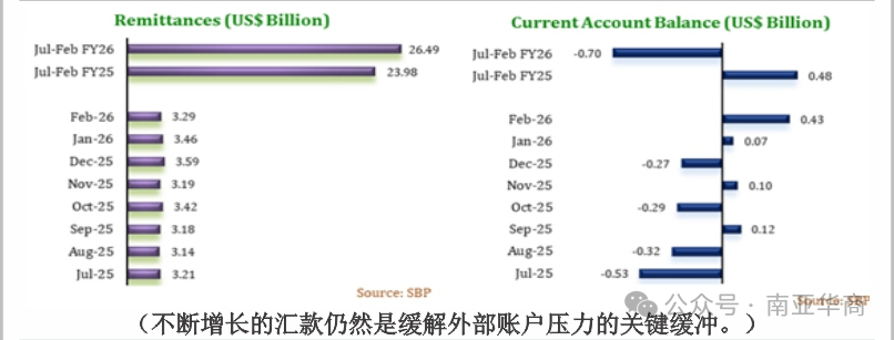 2026财年前八个月,巴基斯坦各项关键经济指标均取得了令人鼓舞的进展。值得注意的是,在汇款增长和进口下降的推动下,经常账户在2月份录得全年最大盈余。信息技术出口延续了增长势头,巩固了巴基斯坦在数字化转型方面的进展。因此,外汇储备升至四年来的最高水平,央行持有的外汇储备也显著增加,这表明巴基斯坦主权流动性进一步增强,危机应对能力进一步增加。与此同时,大型制造业在1月份实现了强劲的两位数增长,进一步推动了工业复苏,并支撑了整体经济活动。鉴于美以和伊朗的冲突加剧,巴基斯坦在能源领域采取的积极规划和紧缩措施有助于确保燃料储备充足,从而保障经济平稳运行。尽管面临区域和外部挑战,但巴基斯坦的准备工作和改革措施,以及国内取得的令人鼓舞的进展,正在为可持续增长奠定基础。