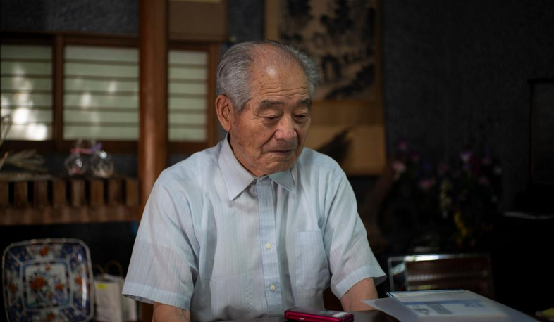 Hideo Shimizu is pictured during an interview with Xinhua at his home in Nagano Prefecture, Japan, Aug. 10, 2024. (Xinhua)