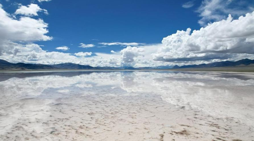 Aerial photo taken on July 20, 2025 shows a salt lake in Yanhu Township, Geji County, Ali Prefecture, Xizang Autonomous Region. (CNS)