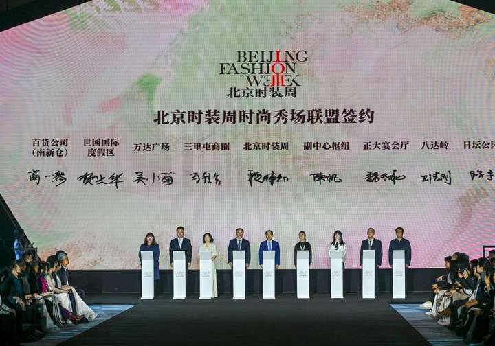 Business representatives sign an agreement during the AW2026 Beijing Fashion Week in Beijing, capital of China, on March 17, 2026. (Xinhua)