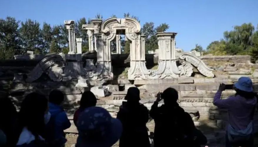 2022年10月18日,圆明园罹难162周年纪念日,民众在圆明园大水法参观。(图/中新网)