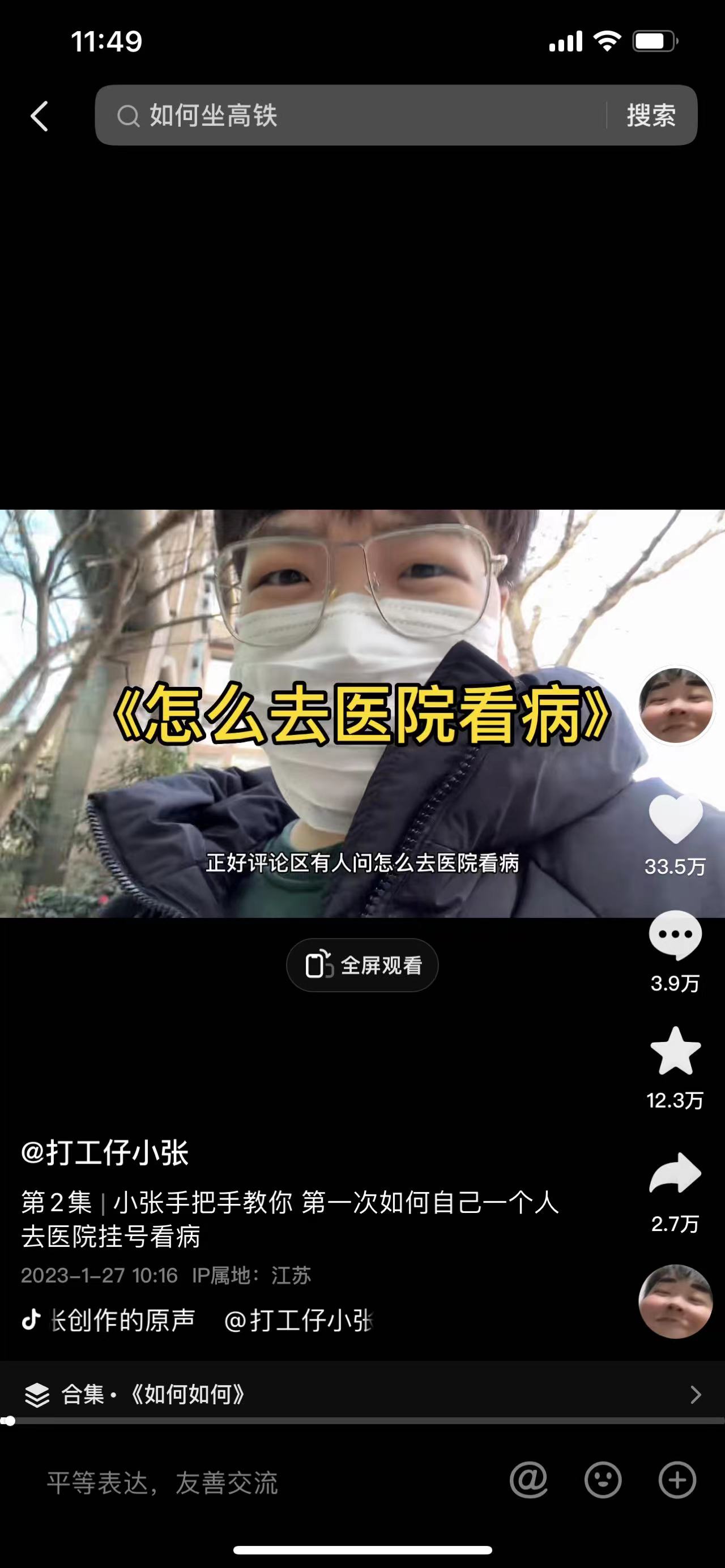 1月26日,抖音博主“打工仔小张”发布了《如何如何》系列的第一条视频——第一次去高铁站如何坐高铁。
