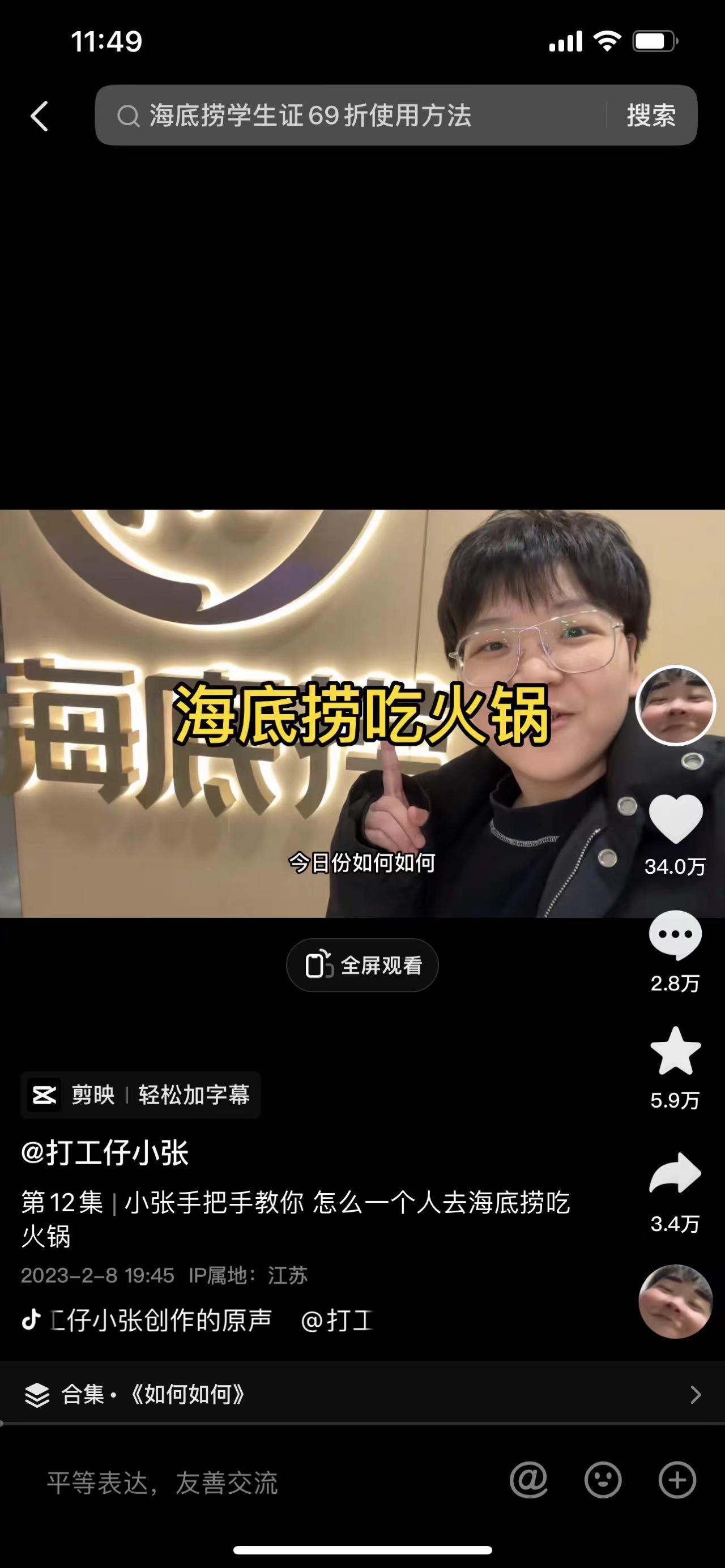 在另一条“如何一个人去海底捞吃火锅”的视频中,她从点餐开始,为大家分享注册会员可以积分、如何选锅底、如何点菜更省钱、喝什么饮品、选调料等所有细节。这条视频目前点赞近28万、评论2.4万,还登上了抖音热榜。