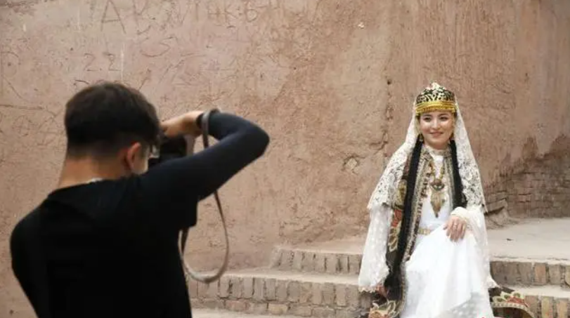 今年“五一”假期,在新疆重要旅游目的地之一的喀什古城里,络绎不绝的人群中,不时会遇到摄影师带着“淡妆浓抹总相宜”的旅拍游客,赶往彩虹巷、布袋巷等网红打卡点,又或者随意在一面墙、一扇门前,拍一套旅行写真,留下美好的时刻,“这组写真是对喀什古城最美好的回忆”。