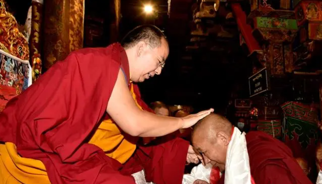 班禅为大昭寺僧众摸顶赐福。(图/中新社)