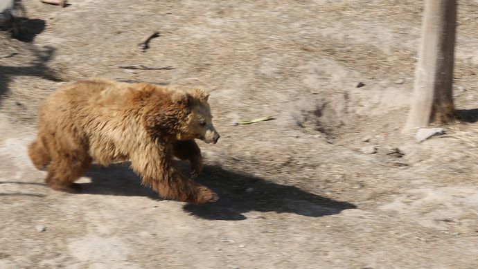 资料显示,西藏棕熊(学名:Ursus arctos pruinosus),哺乳纲、熊科、棕熊的亚种之一,亦称马熊和蓝熊。体长约1.8-2.1米,肩宽约1米。
