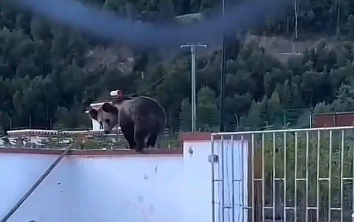 这种情况已经不是一两次。今年4月份,也有棕熊出现在城中心跑进了单位大院。