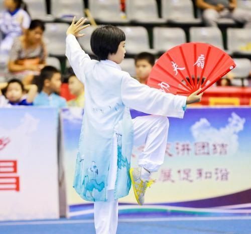 图为参赛者在展示功夫扇。(图/中新网)