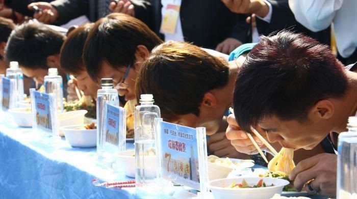 图为历届“最快吃面王”挑战赛精彩瞬间的资料图。(图/中新网)
