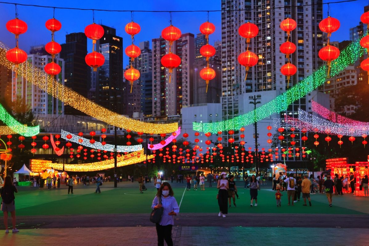 香港维多利亚公园举办市区中秋彩灯会。(图/香港中通社)