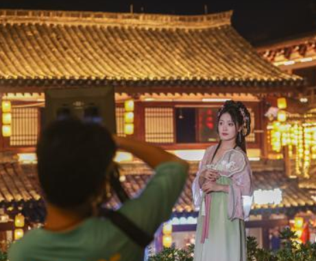 据了解,南昌万寿宫历史文化街区假期前两日共接待游客超33万人次;在西安大唐不夜城的慢直播中,北京时间晚间22时依然流光溢彩人头攒动;社交分享平台上,秦淮河畔南京夫子庙年轻女孩穿着汉服手提花灯拍照帖子数不胜数……