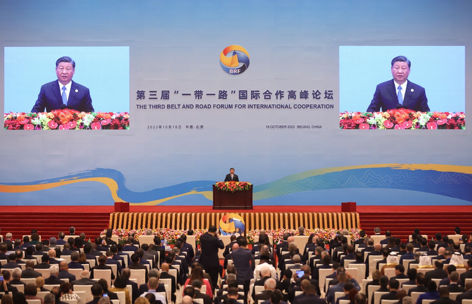 10月18日,中国国家主席习近平在北京人民大会堂出席第三届“一带一路”国际合作高峰论坛开幕式并发表主旨演讲。(图/中新社)