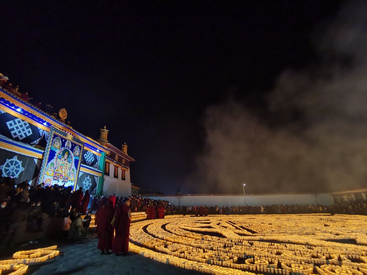 线下燃灯+云供灯 青海藏传佛教格鲁派寺院迎燃灯日