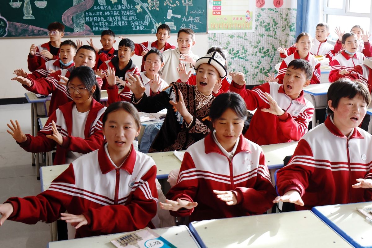 “再唱一遍,唱的时候不要忘词,来......”在老师的带领下,一群少年齐声歌唱,每张脸庞上都透露出认真和快乐。这里是新疆乌恰县黑孜苇乡中学九年级四班,少年们唱的正是中国少数民族三大英雄史诗之一的《玛纳斯》。