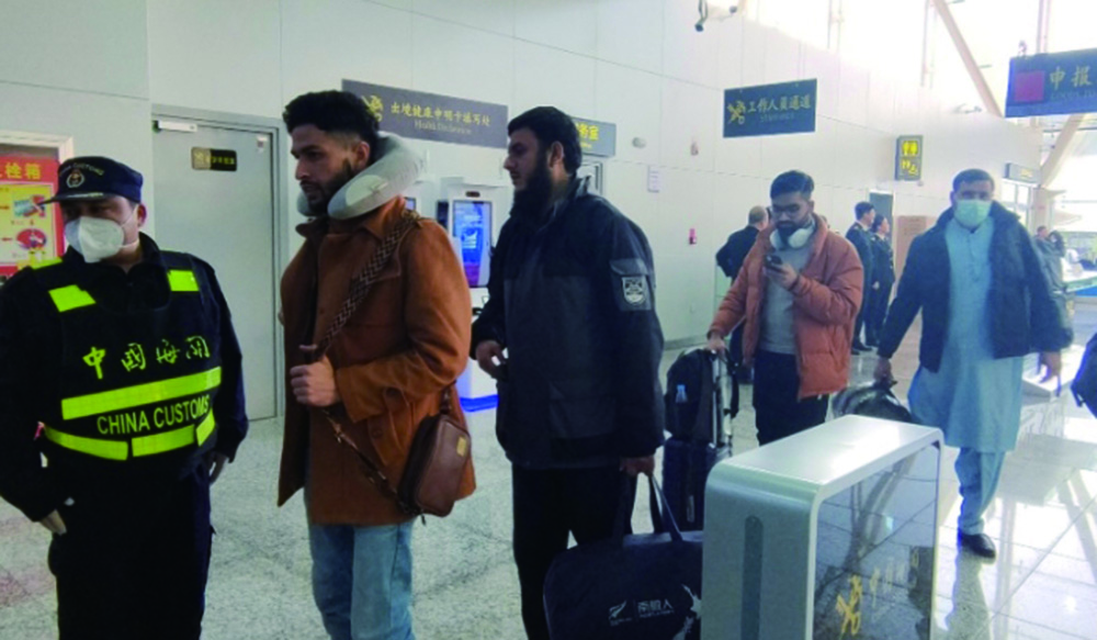 近日,乘坐乌鲁木齐—喀什—伊斯兰堡客运航班的旅客在喀什徕宁国际机场中转。(图/乌鲁木齐《新疆日报》)