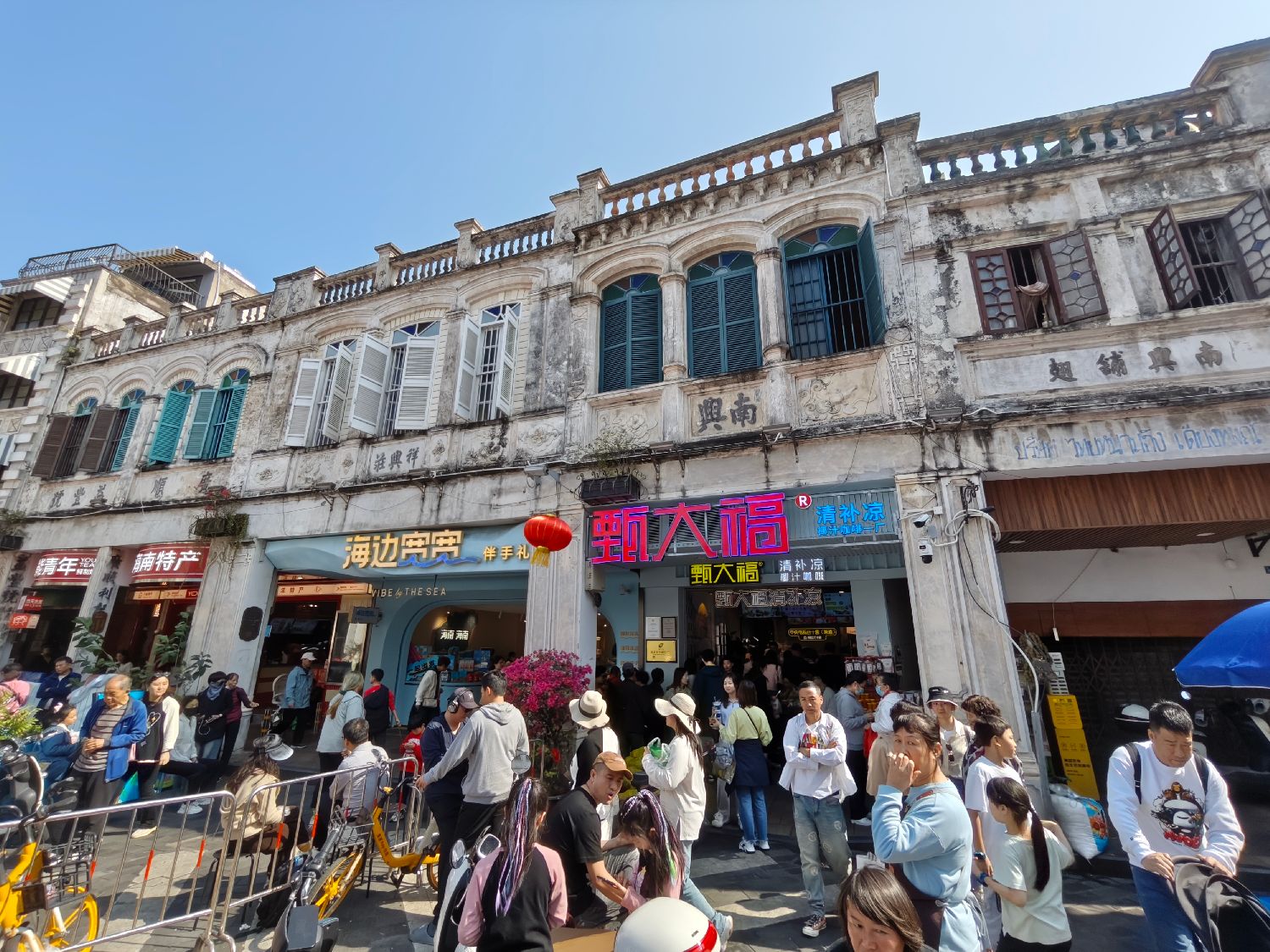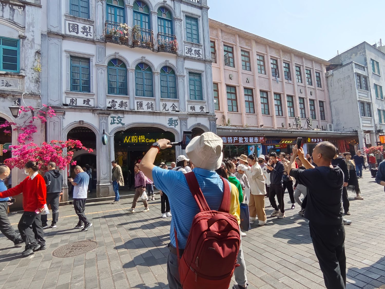 龙年春节,中山路所在的海口骑楼老街热闹非凡,中外游客游览街区,感受老海口的韵味。如织的人潮缓缓前进,很多游客的手机一直举起,拍摄经过的每一栋建筑。