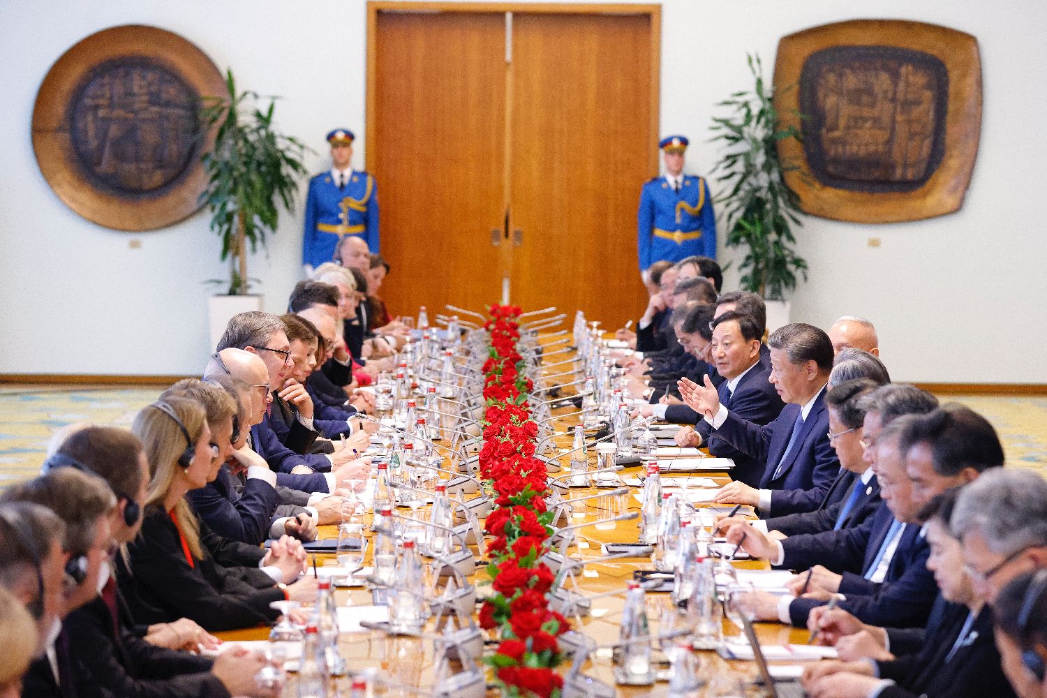 当地时间5月8日,中国国家主席习近平在贝尔格莱德塞尔维亚大厦同塞尔维亚总统武契奇举行会谈。(图/中新社)