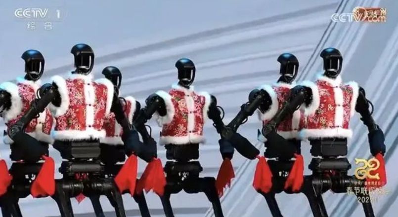 央视春晚上的创意融合舞蹈《秧BOT》 。(图/央视春晚视频截图)