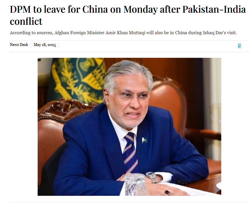 据消息人士透露,达尔将与中国高级官员就巴基斯坦和印度之间当前类似冲突的局势进行磋商。