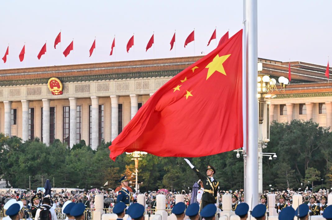 10月1日清晨,隆重的升国旗仪式在北京天安门广场举行,庆祝中华人民共和国成立76周年。(图/中新社)