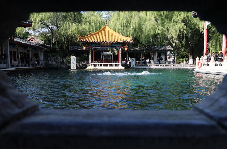 10月14日,“天下第一泉”趵突泉三股泉水喷涌势头强劲。(图/中新社)