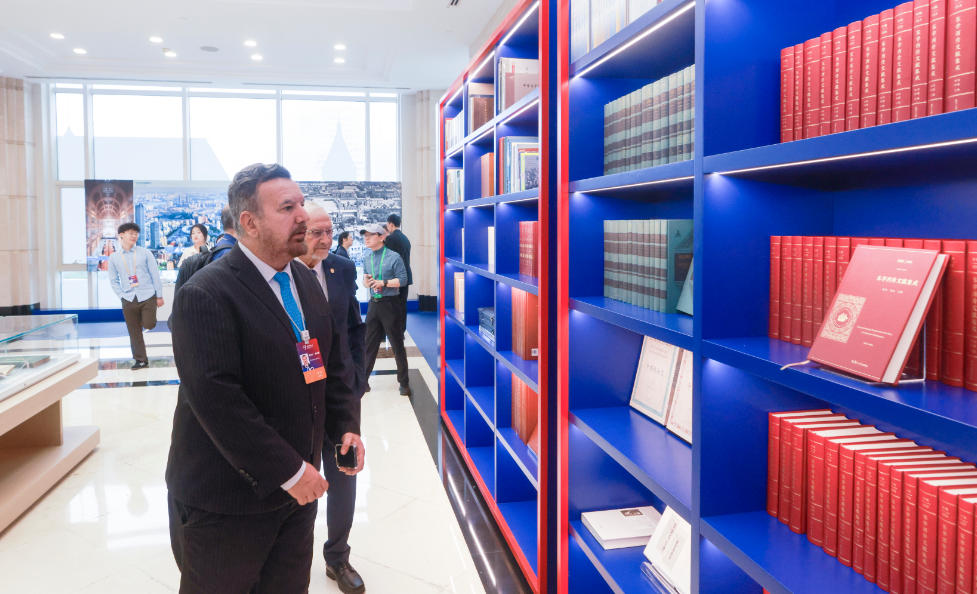 第二届世界中国学大会会场外的中国学研究书籍吸引海外嘉宾参观。(图/中新社)