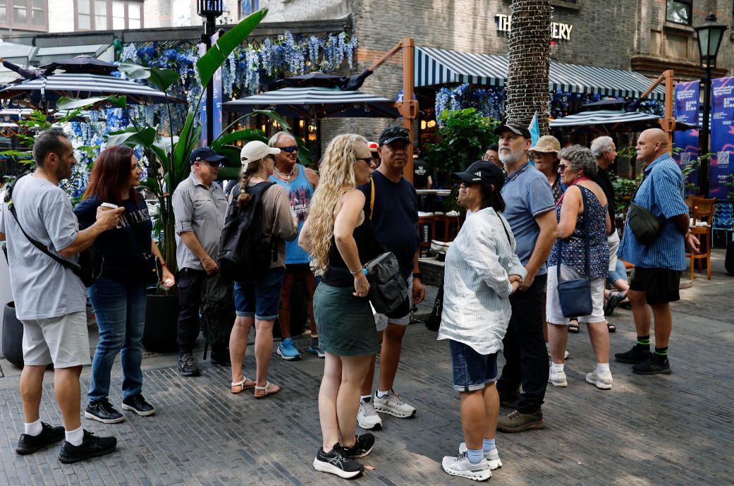 近日,海外游客在上海新天地游玩。(图/中新社)