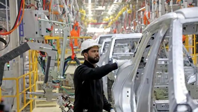 在奇瑞汽车的巴基斯坦生产工厂内,员工在流水线上进行例行检查。(图/人民网)