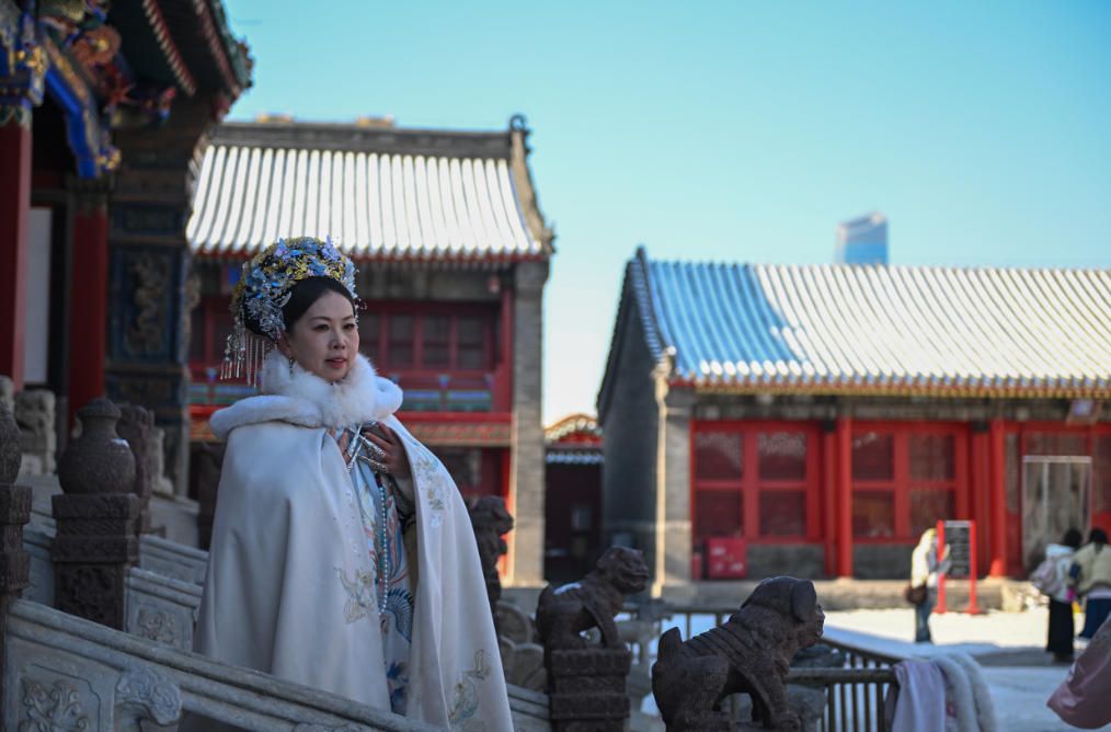 12月26日,身着古装的游客在沈阳故宫打卡拍照。(图/中新社)