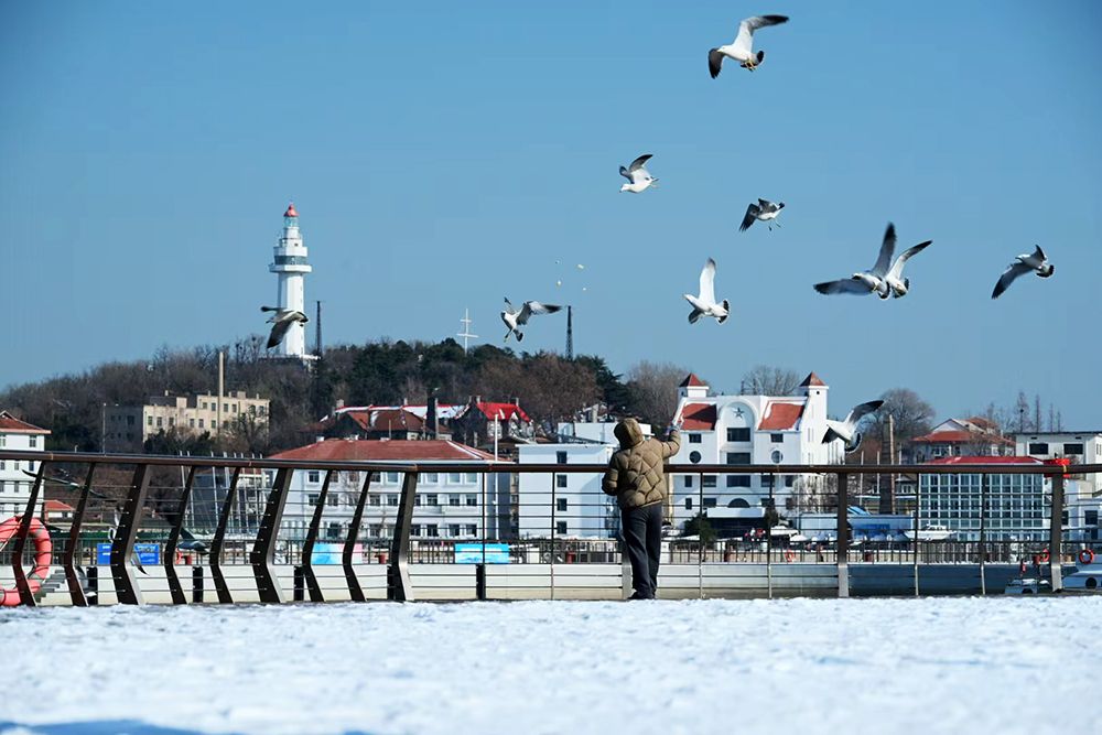 降雪虽给城市交通与生活带来些许不便,却为海岸线勾勒出别样冬日风光。烟台第一海水浴场沿岸,海浪与积雪相映,海鸥翔集其间;威海“火炬八街”,银装素裹的道路延伸向大海,吸引众多游客驻足拍照。
