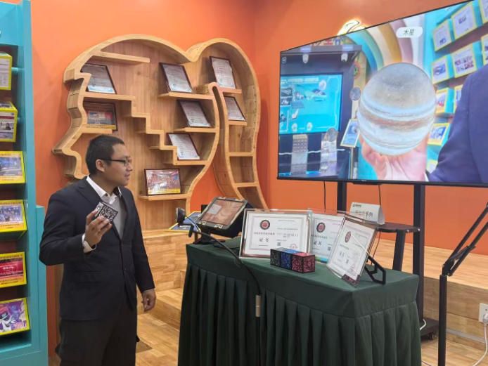 2025年12月17日,廊坊市一家科技企业内,工作人员展示AR与3D仿真技术在天文科教领域的应用。(图/中新社)