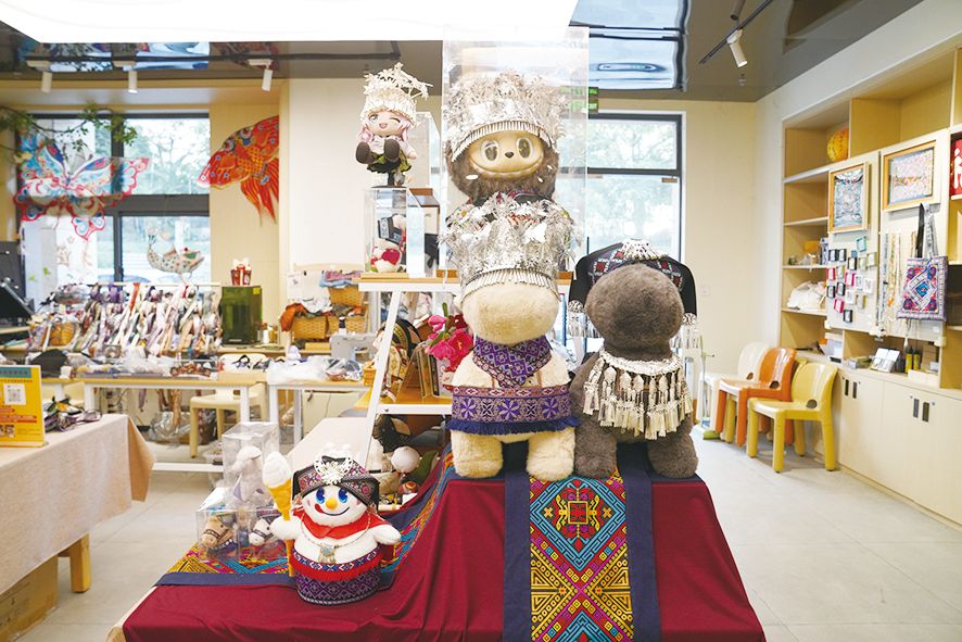 广西壮族自治区博物馆文创工坊内,身着壮锦服饰的拉布布(LABUBU)玩偶吸引众多“娃圈”玩家驻足。这家推出定制“娃衣”服务的手工工坊,一年线上线下售出8000件民族风“娃衣”,占工坊总销售额六成,成为非遗传承的创新载体。