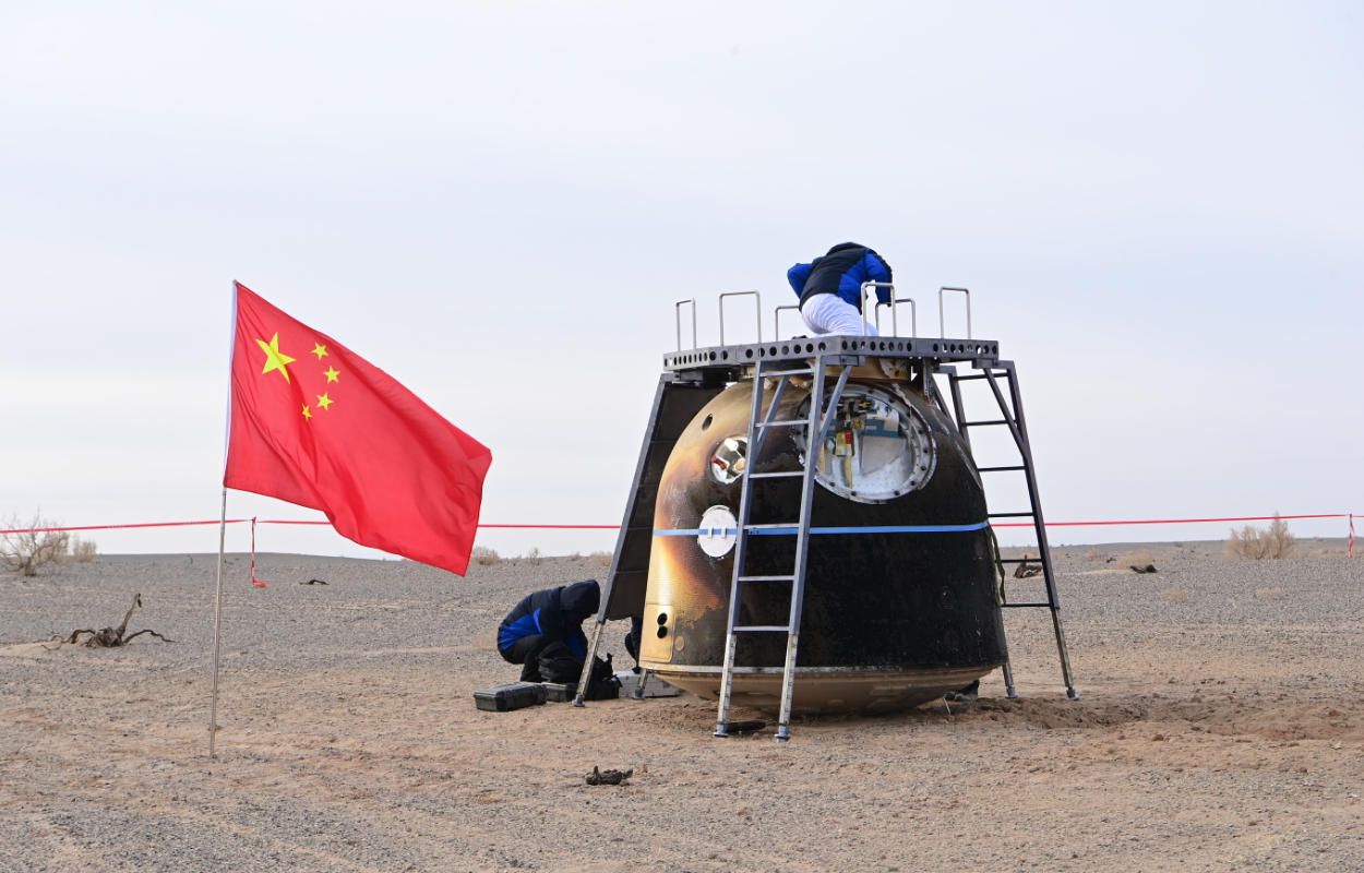 1月19日,据中国载人航天工程办公室消息,神舟二十号飞船返回舱在东风着陆场成功着陆。经现场检查确认,神舟二十号飞船返回舱外观总体正常,舱内下行物品状态良好,神舟二十号飞船返回任务取得圆满成功。(图/中新社)