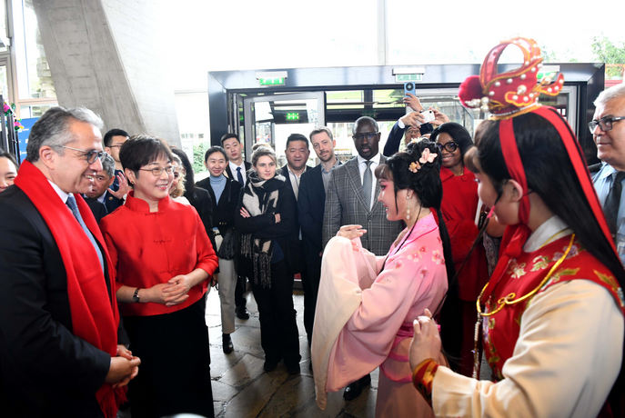 中国常驻联合国教科文组织大使衔代表杨新育在致辞中表示,春节既标志着农历新年的启始,也是家庭团聚、共享喜悦、传承希望的重要时刻。本次春节活动以庙会形式在联合国教科文组织总部举行,让嘉宾身临其境感受中国节日的传统习俗。这些习俗代代相传,体现了中华民族重视家庭、尊重传统、赓续文明的精神内涵,同时展示了中华文化深厚的历史积淀与时代价值。
