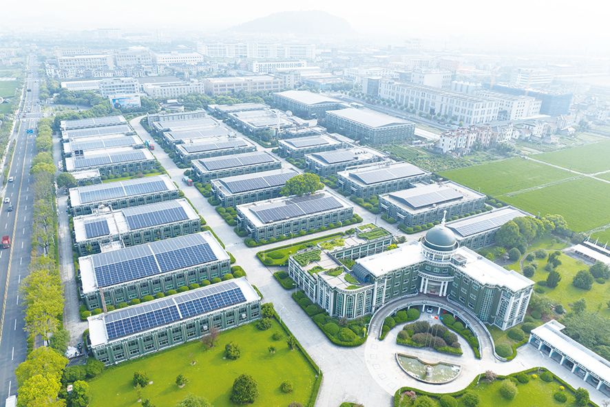 位于浙江杭州的梅林村作为“千万工程”源起地之一,以新能源光伏项目推动乡村振兴。图为梅林村的低碳工厂,企业年发电550万千瓦时,减碳3069吨。(图/中新社)