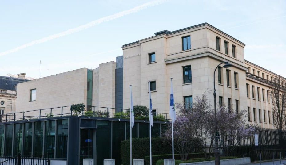 3月15日在法国巴黎拍摄的经济合作与发展组织总部。当地时间3月15日上午,中美两国经贸团队在法国巴黎开始举行中美经贸磋商。(图/新华社)