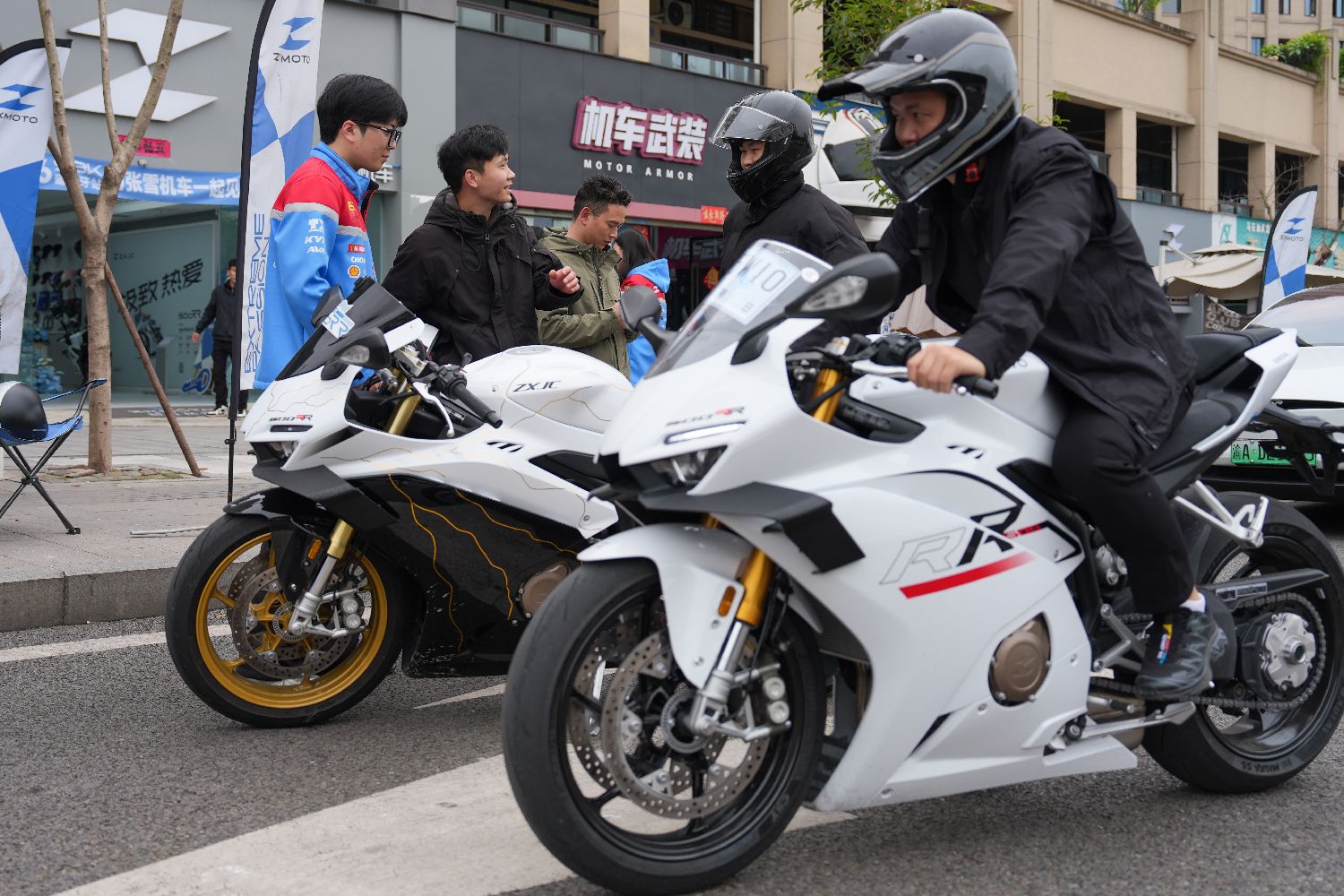 4月1日,多名顾客在张雪机车重庆市两江新区店试驾。(图/中新社)