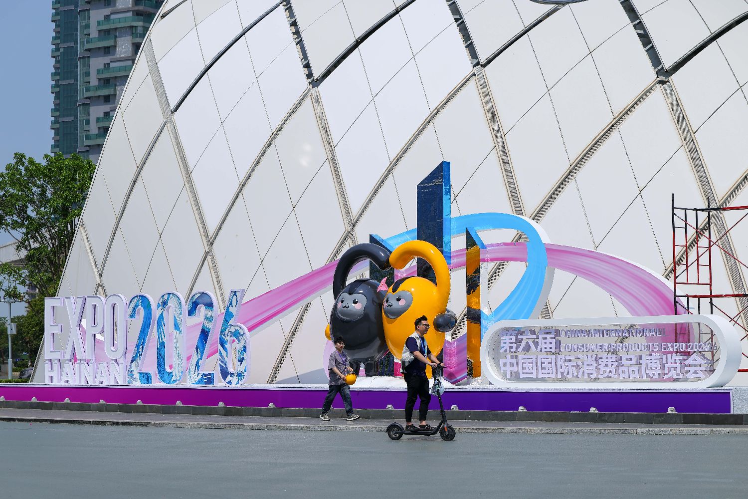 第六届中国国际消费品博览会主会场入口处的户外主题景观。(图/中新社)