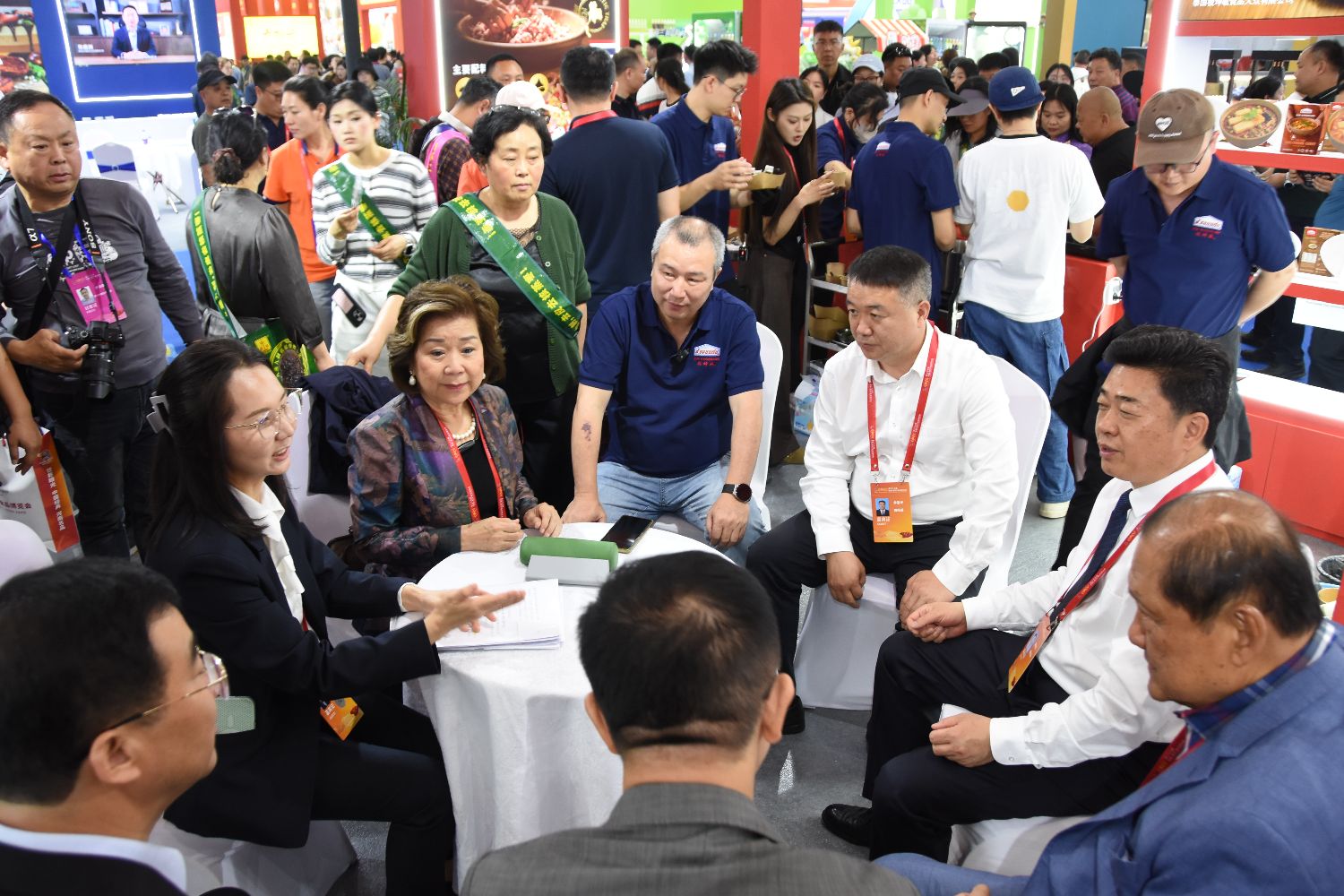 4月19日,第二十三届中国(漯河)食品博览会在河南漯河启幕。图为泰国客商正在和中方客户洽谈业务。(图/中新社)
