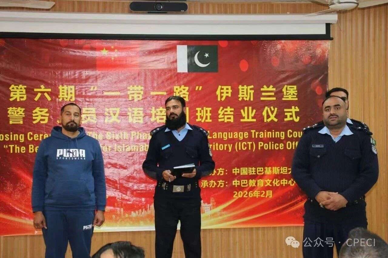2026年2月4日,由中国驻巴基斯坦大使馆主办、中巴教育文化中心承办的第六期“一带一路”伊斯兰堡警务人员汉语培训班结业仪式在伊斯兰堡隆重举行。本次活动汇聚中巴两国政界、学界及企业代表,共同见证136名巴方警务人员完成中文培训课程,标志着中巴执法合作与文化交流迈入新阶段。