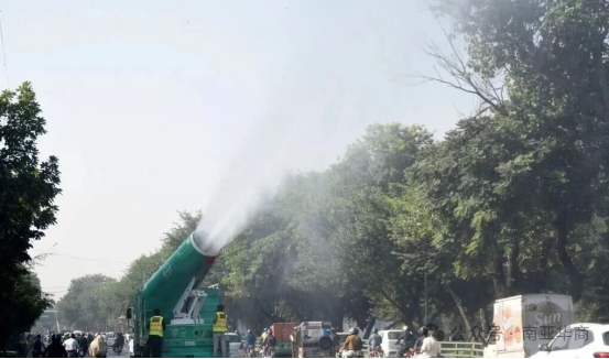 拉合尔是世界上污染最严重的城市之一,每年冬天,由于焚烧农作物、汽车尾气排放和工业污染,拉合尔的雾霾状况日益严重,威胁着公众健康和日常生活。同时,雾霾会导致咽喉痛、眼部刺激和呼吸系统疾病,长期暴露于雾霾中还会增加中风、心脏病和肺癌的风险。儿童由于呼吸频率较高、免疫系统较弱,尤其容易受到影响。但旁遮普省一名高级官员表示:“经先进环境监测系统科学分析验证,空气污染水平已下降约70%。”“我们始终致力于利用现代技术防治雾霾、保障公民健康。”视频显示,除雾车在拉合尔喷洒细水雾,帮助清除灰尘和污染物。雾霾季节始于十月下旬,高峰期在十一月至一月,并持续至二月。目前,拉合尔的1400万居民在六个月的时间里呼吸着PM2.5浓度的空气,这些微小颗粒可以穿透肺部和血液,其浓度是世界卫生组织建议的20倍甚至更多。巴基斯坦的主要城市中心经常位列世界上污染最严重的城市之列,其中车辆排放仍然是造成空气污染的主要原因之一。严重的空气污染还损害了经济生产力,降低了数百万居民的生活质量。